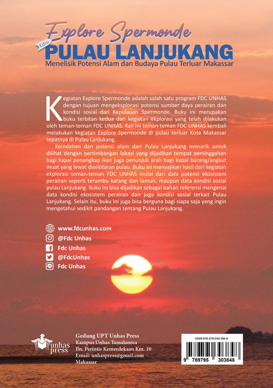 Kegiatan Explore Spermonde adalah salah satu program FDC UNHAS dengan tujuan mengeksplorasi ptensi sumber daya perairan dan kondisi sosial dari Kepulauan Spermonde. Buku ini merupakan buku terbitan kedua dari kegiatan eksplorasi yang telah dilakukan oleh teman0teman FDC UNHAS. Kali ini teman-teman FDC UNHAS kembali melakukan kegiatan Explore Spermonde di pulau terluar kota Makassar tepatnya di Pulau Lanjukang.
