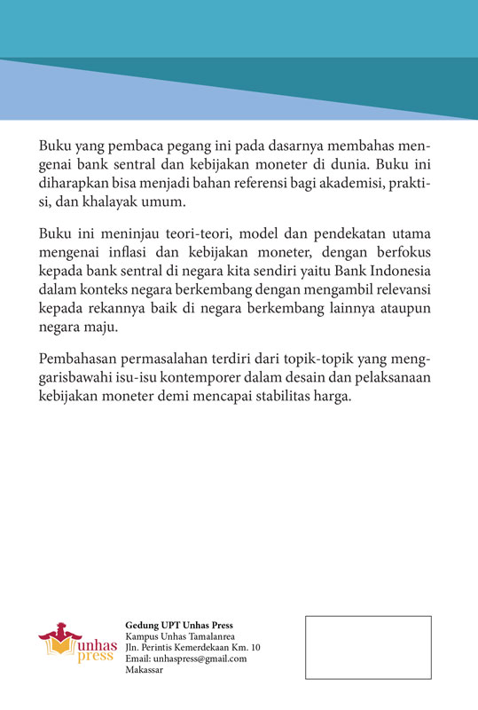 Buku ini meninjau teori-teori, model dan pendekatan utama mengenai inflasi dan kebijakan moneter, dengan berfokus kepada bank sentral di negara kita sendiri yaitu Bank Indonesia dalam konteks negara berkembang dengan mengambil relevansi kepada rekannya baik di negara berkembang lainnya ataupun negara maju.