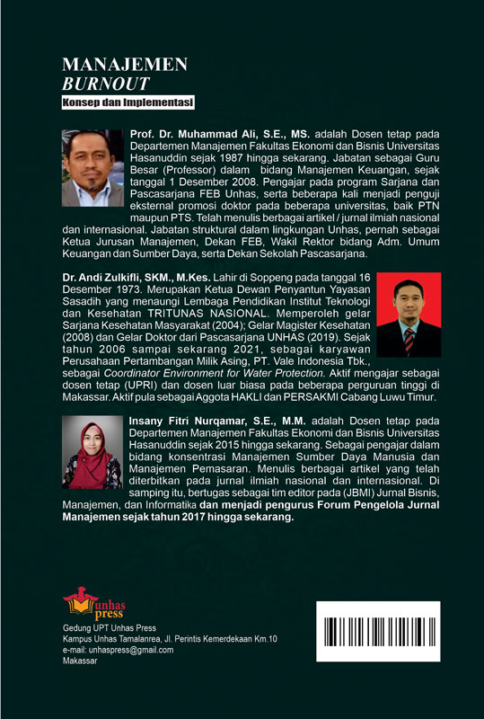Penulis sangat berharap, kiranya buku ini dapat memberi pengayaan tentang konsep dan implementasi manajemen burnout, sehingga diperoleh tambahan referensi bagi pemerhati/peneliti, serta pengambil kebijakan untuk diimplementasikan pada berbagai latar organisasi, di antaranya organisasi bisnis, organisasi pelayanan sosial kemasyarakatan, organisasi kesehatan, serta organisasi publik