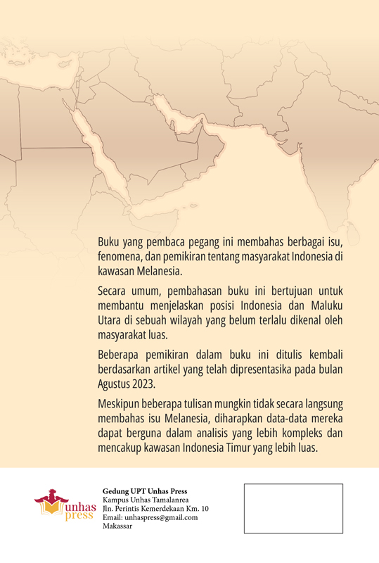 Buku yang pembaca pegang ini membahas berbagai isu, fenomena, dan pemikiran tentang masyarakat Indonesia di kawasan Melanesia.