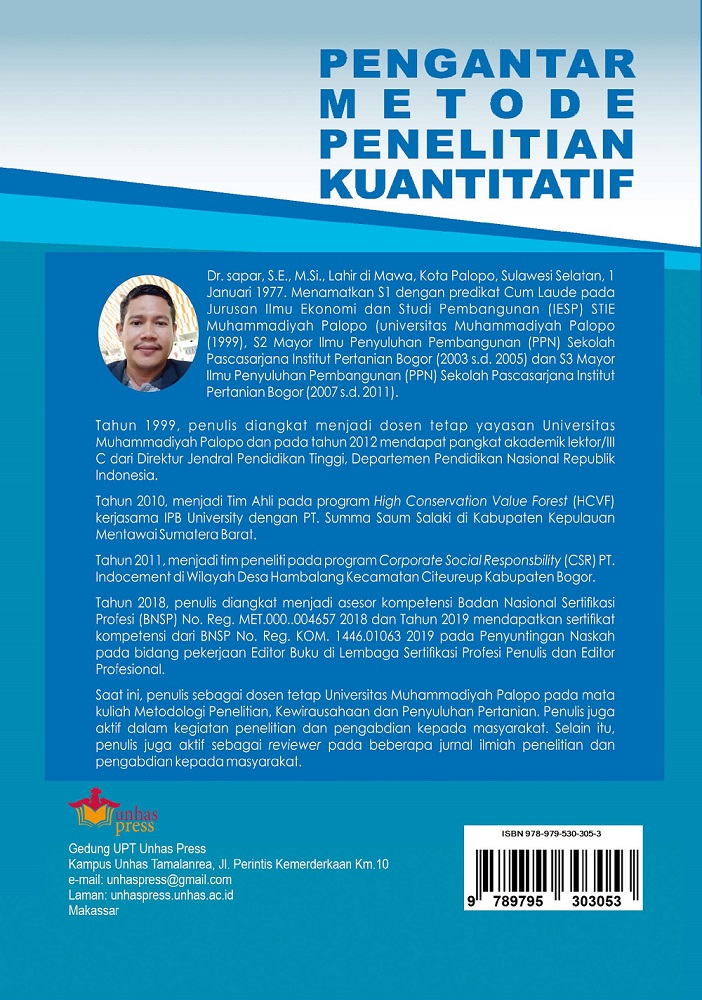 Buku Pengantar Metode Penelitian Kuantitatif ini diharapkan menambah khazanah tentang ilmu pengetahuan tentang metode penelitian. Mengingat pentingnya kegiatan penelitian di lembaga pendidikan dan pengembangan, maka buku ini dapat dijadikan bahan referensi atau pedoman teoritis.