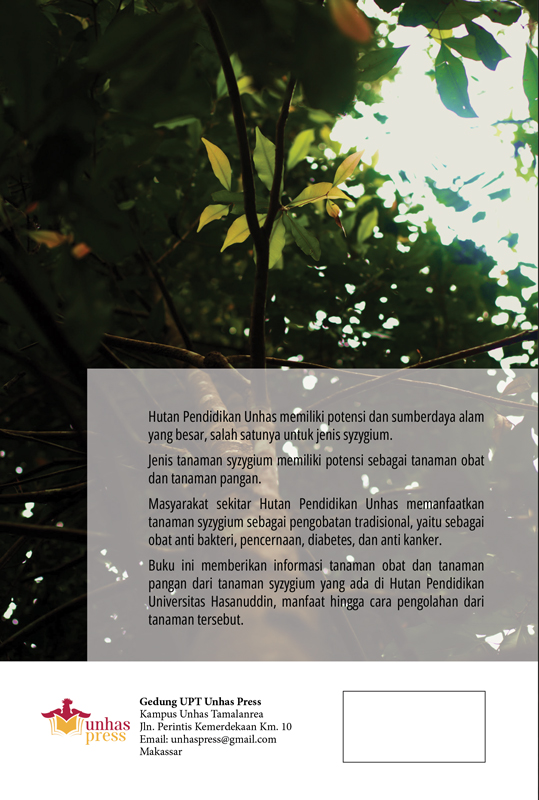 Buku ini memberikan informasi tanaman obat dan tanaman pangan dari tanaman syzygium yang ada di Hutan Pendidikan Universitas Hasanuddin, manfaat hingga cara pengolahan dari tanaman tersebut.